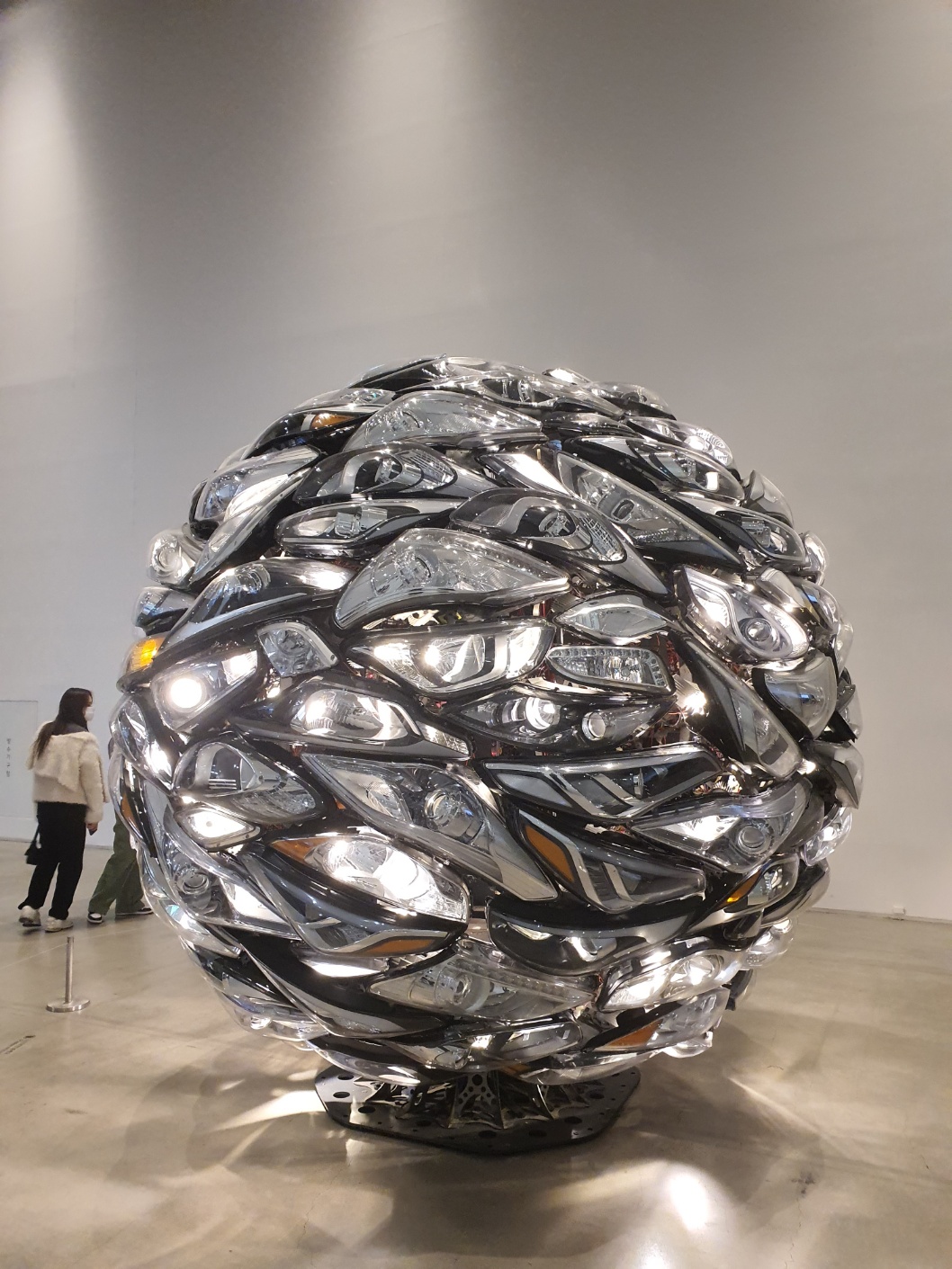 폐차 직전의 현대자동차에서 분해한 차들의 전조등과 후미등으로 만든 작품이며