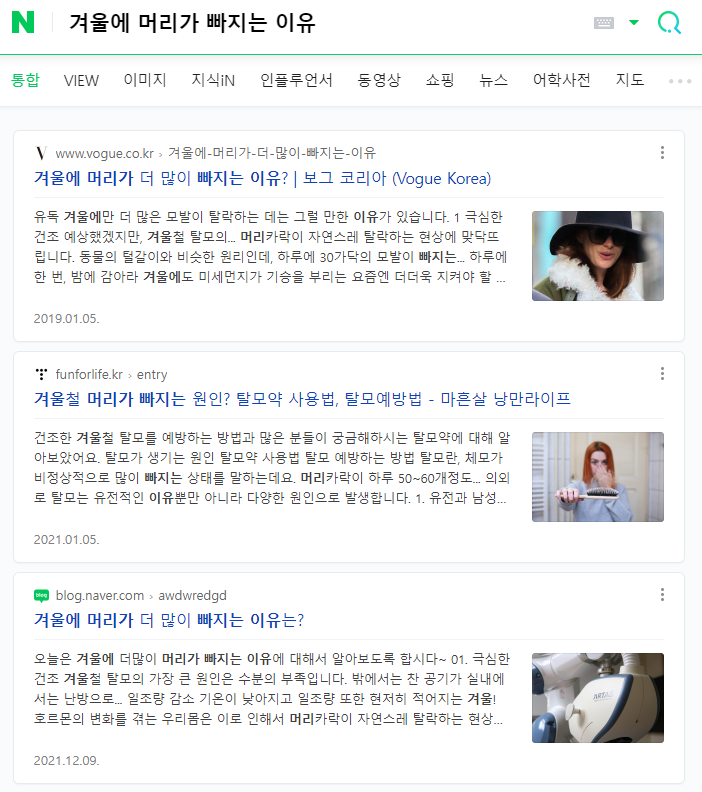 저 요새 자꾸 머리가 많이 빠지는 것 같아서 검색을 해봤는데요
