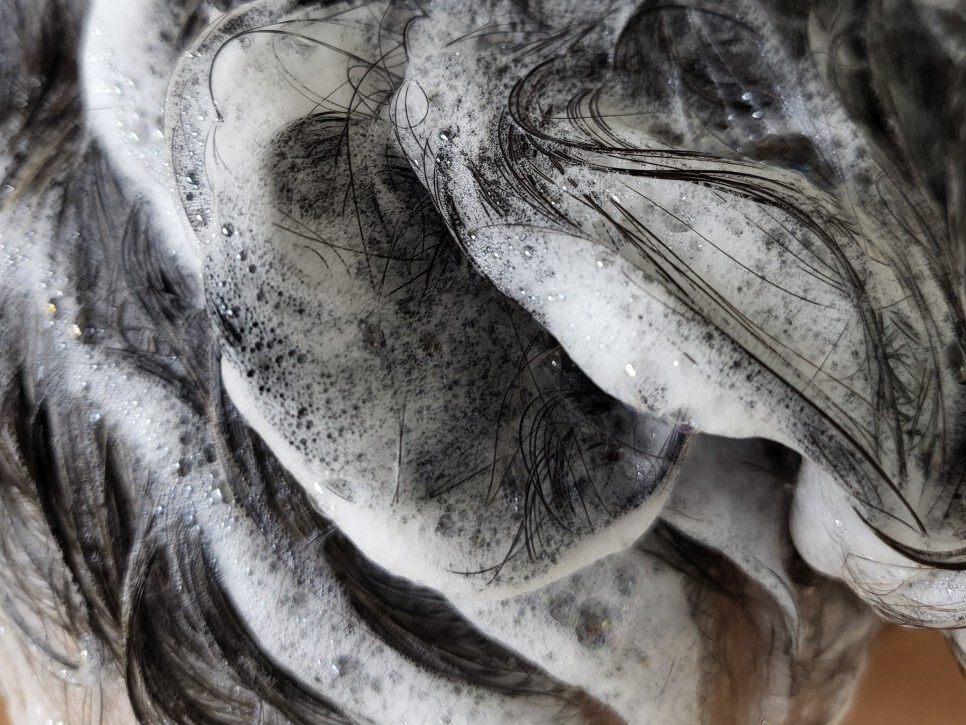 1분정도 두피마사지하면서 약간 불려(?)놨다가 씻어내면 더 좋다고 합니다!